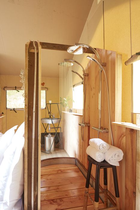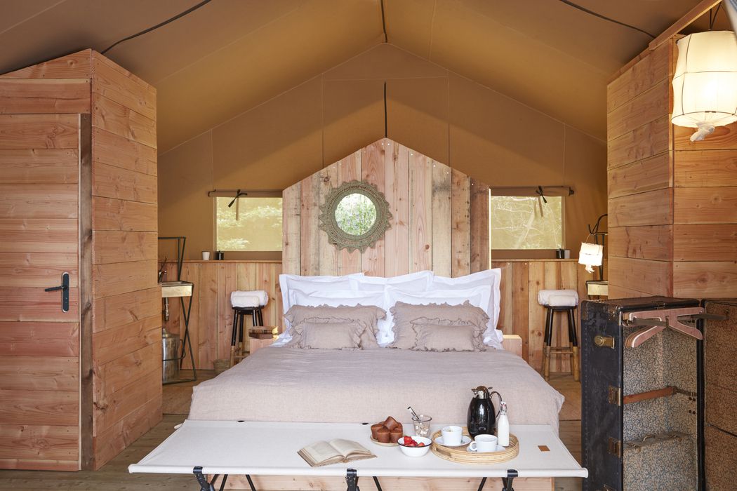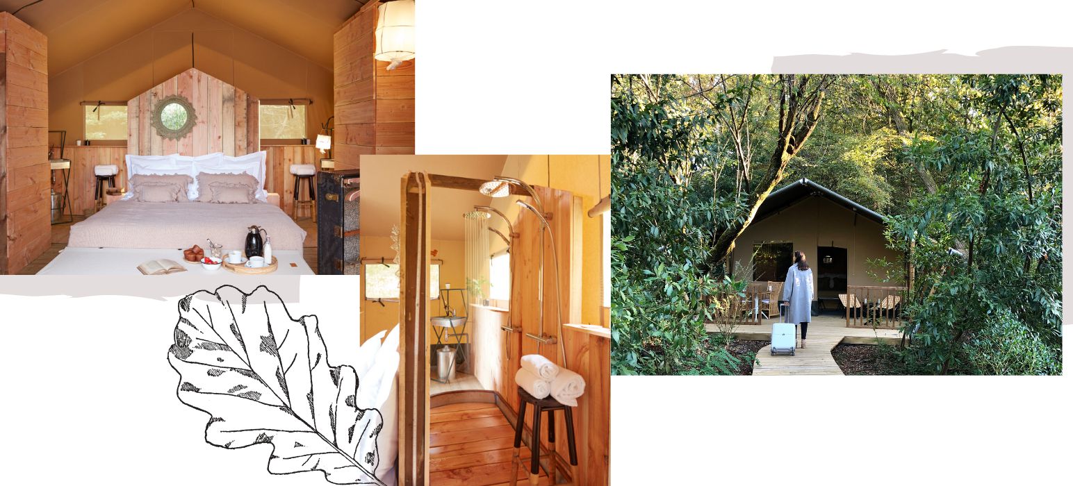 Après le Pavillon, à l’orée du bois, nos 4 lodges confortables et élégants se nichent derrière les feuillages !